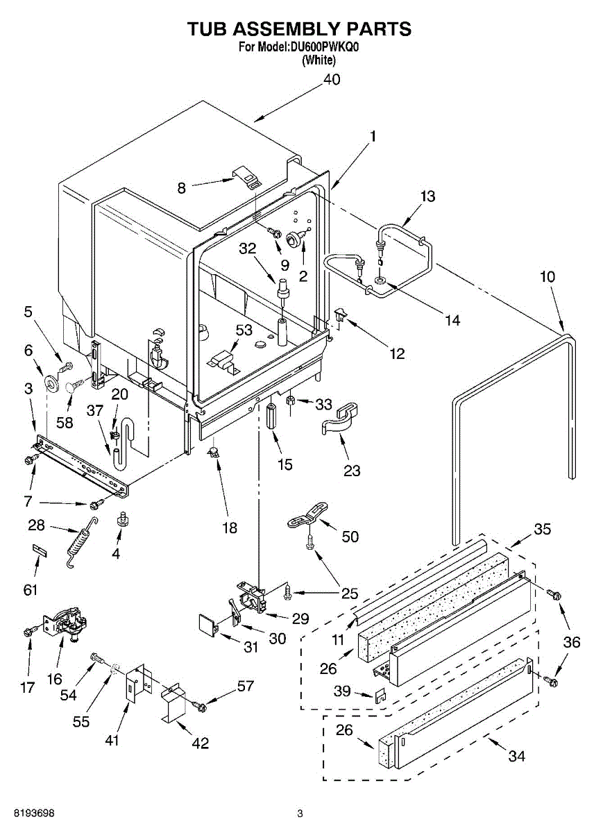 Tank deflector prevents leaks from dishwasher tub corners. Replace if cracked, chipped, or causing water seepage at door bottom. Verify fit with model.