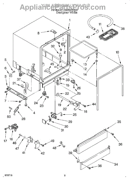 The Deflector is an OEM replacement part for Whirlpool dishwashers. Located in the lower corners of the tub, this component works to prevent leaks by keeping water from entering the cracks along the tub edges.