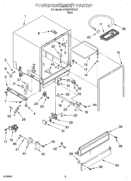 The Deflector is an OEM replacement part for Whirlpool dishwashers. Located in the lower corners of the tub, this component works to prevent leaks by keeping water from entering the cracks along the tub edges.