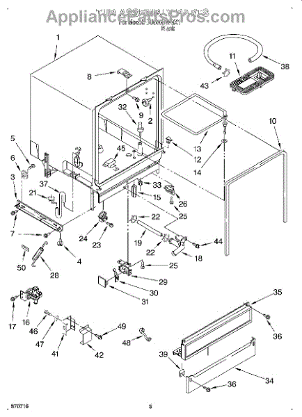 The Deflector is an OEM replacement part for Whirlpool dishwashers. Located in the lower corners of the tub, this component works to prevent leaks by keeping water from entering the cracks along the tub edges.