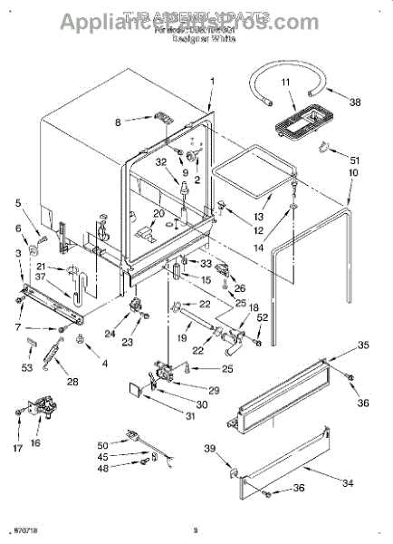 The Deflector is an OEM replacement part for Whirlpool dishwashers. Located in the lower corners of the tub, this component works to prevent leaks by keeping water from entering the cracks along the tub edges.
