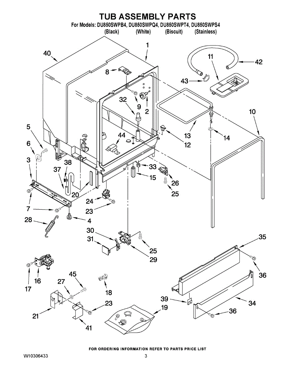 Dishwasher tub assembly forms the main interior basin where dishes are washed. Replace if cracked, warped, or leaking at seams. Complete tub structure.
