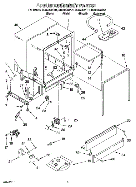 Parts for Whirlpool DU850SWPT1: 03 - Tub Assembly Parts