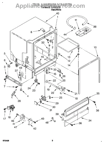 The Deflector is an OEM replacement part for Whirlpool dishwashers. Located in the lower corners of the tub, this component works to prevent leaks by keeping water from entering the cracks along the tub edges.
