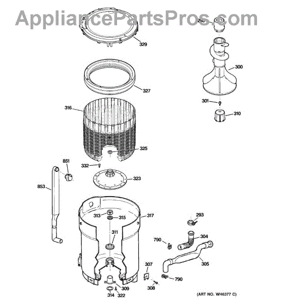 Replaces a cracked or leaking wash tub to restore water containment and drum support. Fixes leaks, rubbing noises, and vibration. Confirm fit by model.