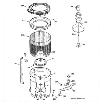 The Inner Tub Mounting is an OEM part for GE washing machines. It secures the inner tub to the washer's outer tub, providing stability and support during the wash and spin cycles. This mounting component is crucial for the proper alignment and operation of the washer's drum.