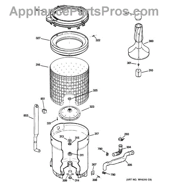 Replaces a cracked or leaking wash tub to restore water containment and drum support. Fixes leaks, rubbing noises, and vibration. Confirm fit by model.