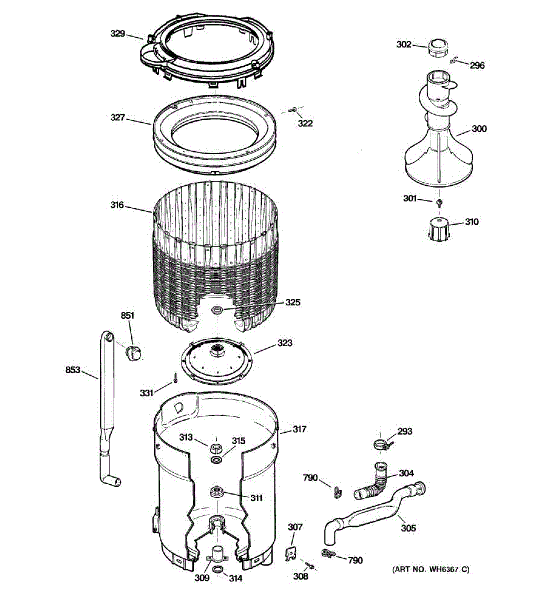 Parts for Ge WCCB1030J1WC: 03 - Tub, Basket & Agitator Parts