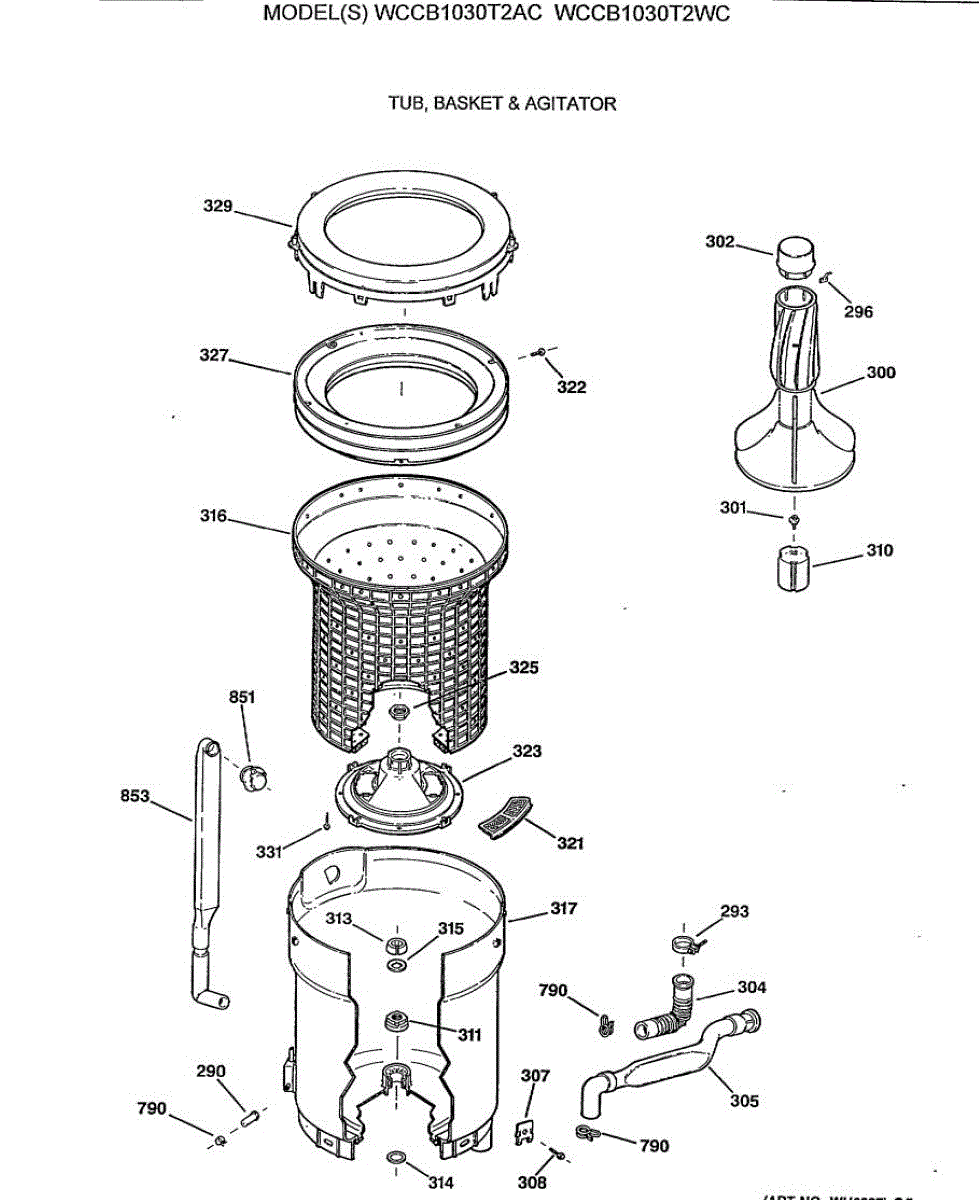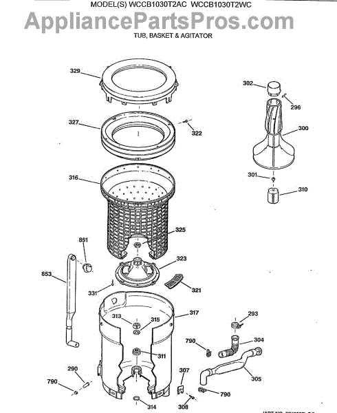 Parts for Ge WCCB1030T2WC: 03 - Tub, Basket & Agitator Parts