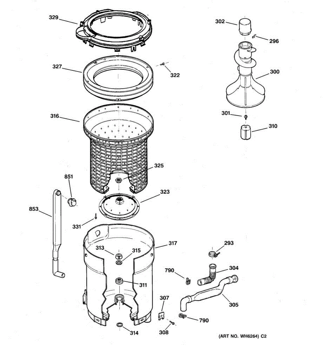 Parts for Ge WCCD2050B1KC: 03 - Tub, Basket & Agitator Parts