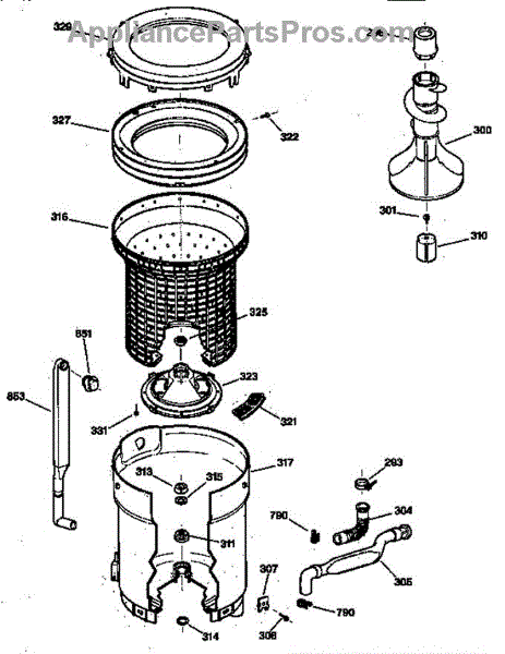 Parts for Ge WCSR411078AA: Tub, Basket & Agitator Parts