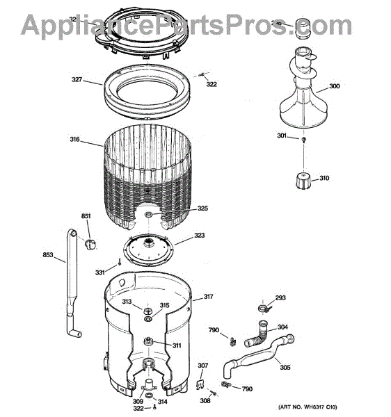 Replaces a cracked or leaking wash tub to restore water containment and drum support. Fixes leaks, rubbing noises, and vibration. Confirm fit by model.