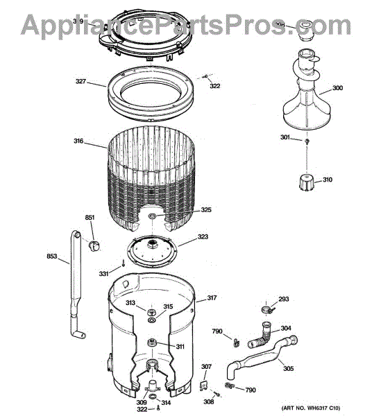 Replaces a cracked or leaking wash tub to restore water containment and drum support. Fixes leaks, rubbing noises, and vibration. Confirm fit by model.
