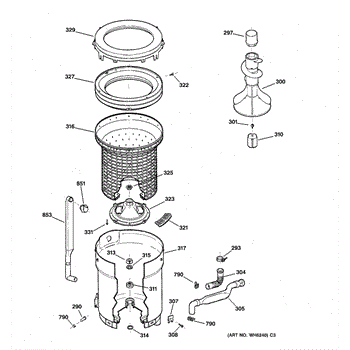 The Agitator Assembly is an OEM part for GE washing machines. This essential component is responsible for moving clothes during the wash cycle, ensuring thorough cleaning by continually shifting the laundry within the drum. The agitator's design includes fins or vanes that help to circulate water and detergent through the clothes, effectively removing dirt without causing excessive wear to the fabric.