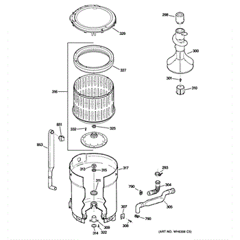 The Agitator Assembly is an OEM part for GE washing machines. This essential component is responsible for moving clothes during the wash cycle, ensuring thorough cleaning by continually shifting the laundry within the drum. The agitator's design includes fins or vanes that help to circulate water and detergent through the clothes, effectively removing dirt without causing excessive wear to the fabric.