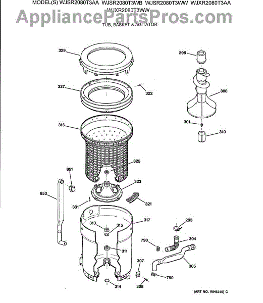 Parts for Ge WJSR2080T3AA: 03 - Tub, Basket & Agitator Parts