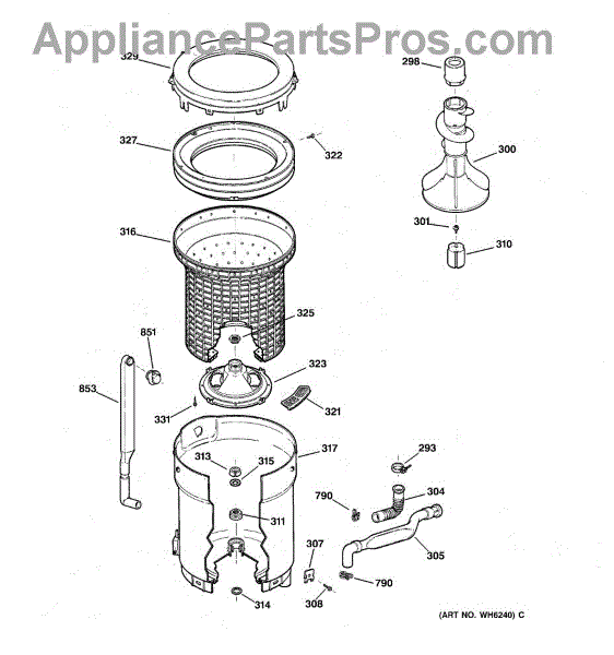 Parts for Ge WNSR3090V1WW: 03 - Tub, Basket & Agitator Parts