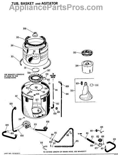 Parts for Ge WWA5600GAL: 05 - Tub, Basket And Agitator Parts
