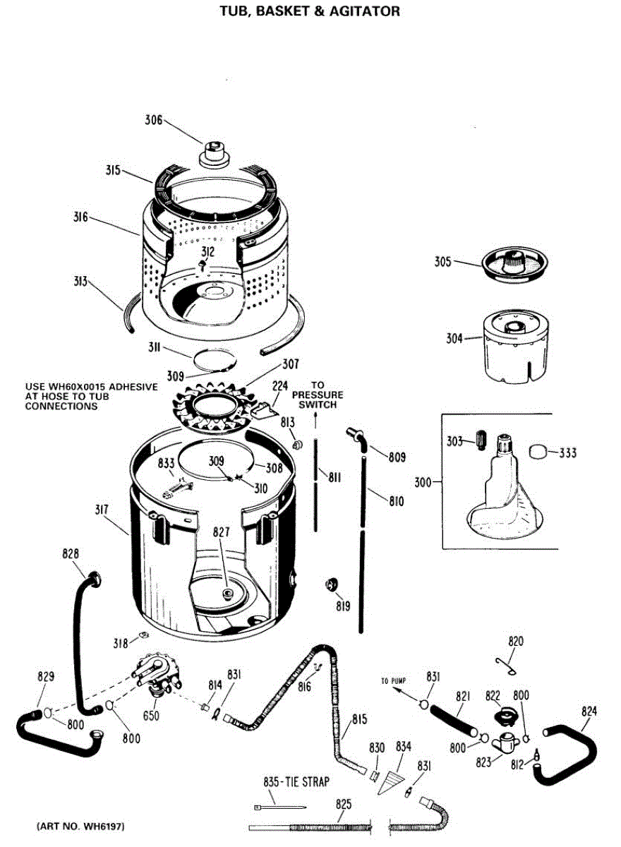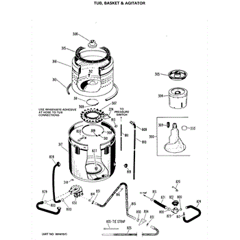 Parts for Ge WWA5800GBL: 02 - Tub, Basket & Agitator Parts