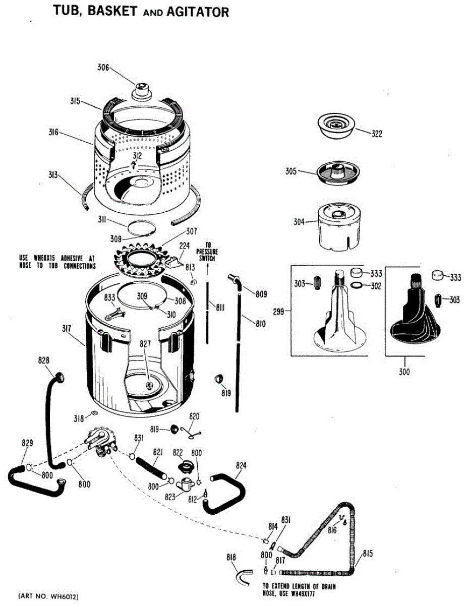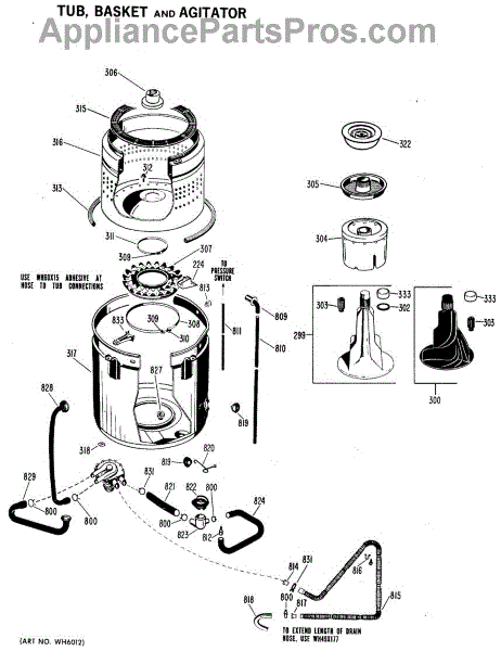 Parts for Ge WWA5800VCL: 02 - Tub, Basket And Agitator Parts