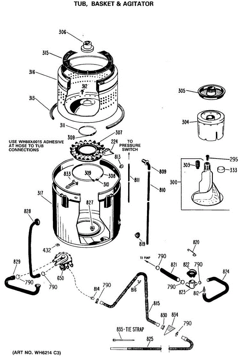 Parts for Ge WWA5857RBL: 04 - Tub, Basket & Agitator Parts