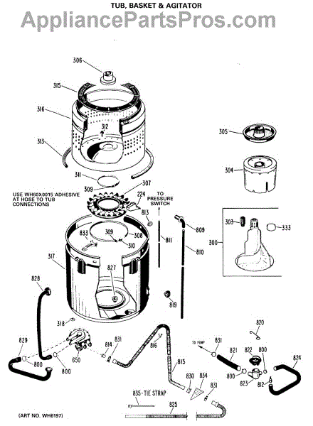 Parts for Ge WWA7070GBL: 02 - Tub, Basket & Agitator Parts