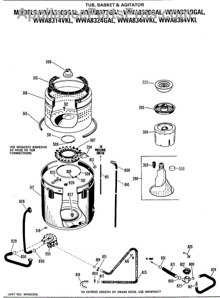 Parts for Ge WWA8314VKL: 03 - Tub, Basket & Agitator Parts