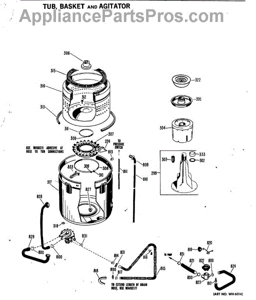 Parts for Ge WWA8360BAL: 03 - Tub, Basket And Agitator Parts