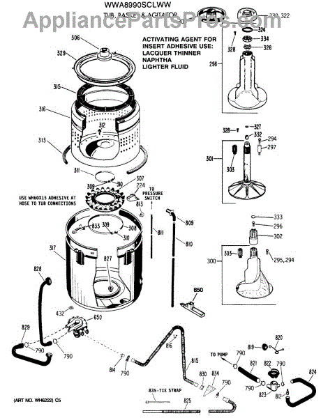 Parts for Ge WWA8600SCLAA: 04 - Tub, Basket & Agitator Parts