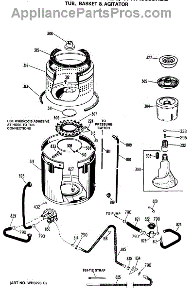 Parts for Ge WWA8689RBL: 04 - Tub, Basket & Agitator Parts