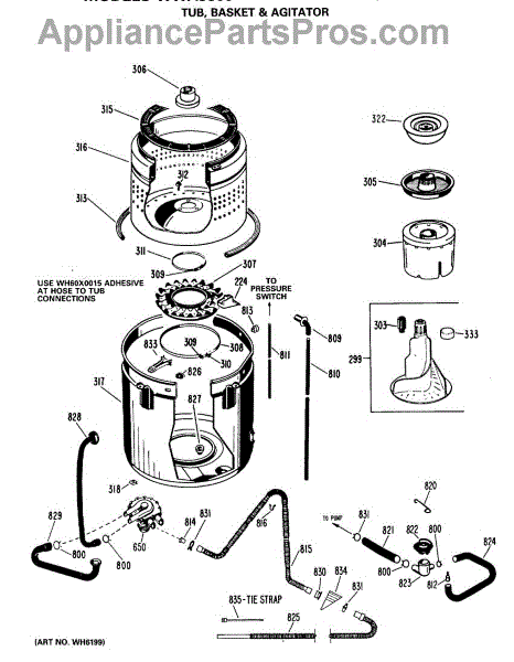 Parts for Ge WWA9850MAL: 02 - Tub, Basket & Agitator Parts