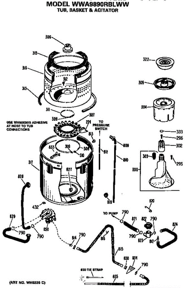 Parts for Ge WWA9890RBLWW: Tub, Basket And Agitator Parts
