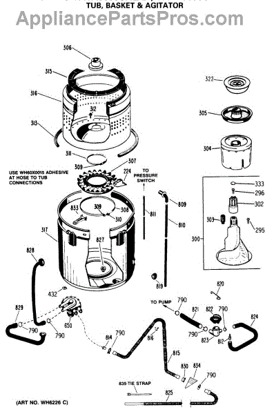 Parts for Ge WWA9895SALAA: 04 - Tub, Basket & Agitator Parts