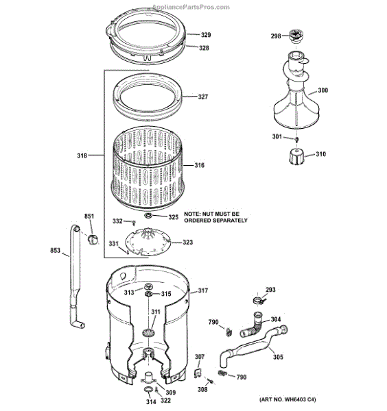 The Hub Nut is an OEM part for GE washing machines. This component secures the inner tub to the drive mechanism, ensuring that it remains in place during the agitation and spinning cycles. This lock-down nut is reverse threaded, meaning that it is loosed by rotating it clockwise. For easier removal of the old nut, it is recommended to use the tub nut spanner wrench WX5X1325.
