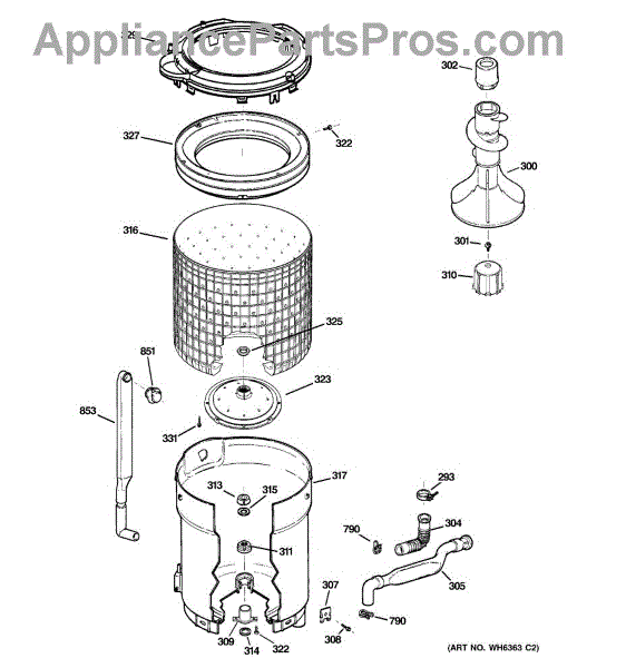 • Provides the sealed reservoir that holds wash water and supports the inner drum during wash and spin cycles