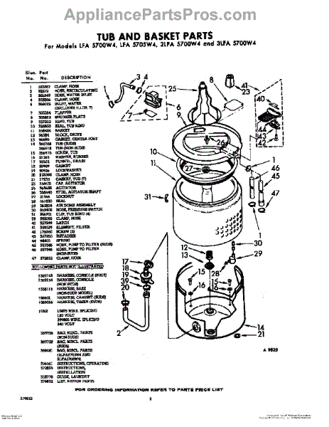 Parts for Whirlpool 2LFA5700W4: 02 - Tub And Basket, Lit / Optional Parts