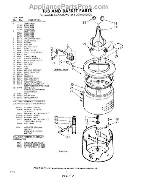 Parts for Whirlpool 3CDA2000W0: 08 - Tub And Basket , Lit / Optional Parts