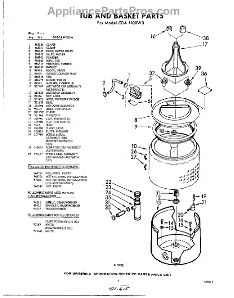 Parts for Whirlpool CDA1100W0: 05 - Tub And Basket , Lit / Optional Parts