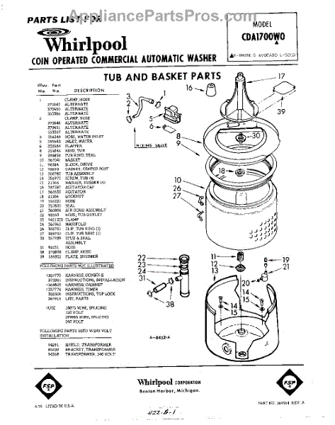 Parts for Whirlpool CDA1700W0: 01 - Tub And Basket , Lit / Optional Parts