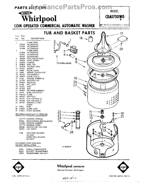 Parts for Whirlpool CDA1750W0: 01 - Tub And Basket , Lit / Optional Parts