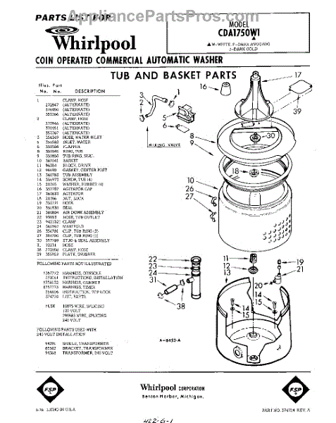 Parts for Whirlpool CDA1750W1: 01 - Tub And Basket , Lit / Optional Parts