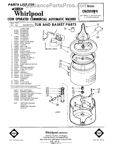 Parts for Whirlpool CFA2010W0: 01 - Tub And Basket , Lit / Optional Parts