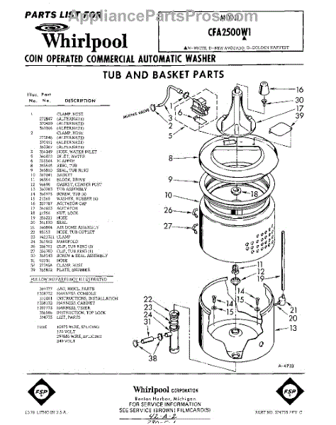 Parts for Whirlpool CFA2500W1: 01 - Tub And Basket , Lit / Optional Parts