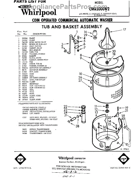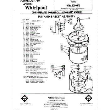 Parts for Whirlpool CWA2000W2: 01 - Tub And Basket , Lit / Optional Parts