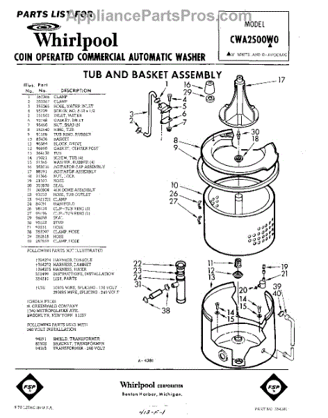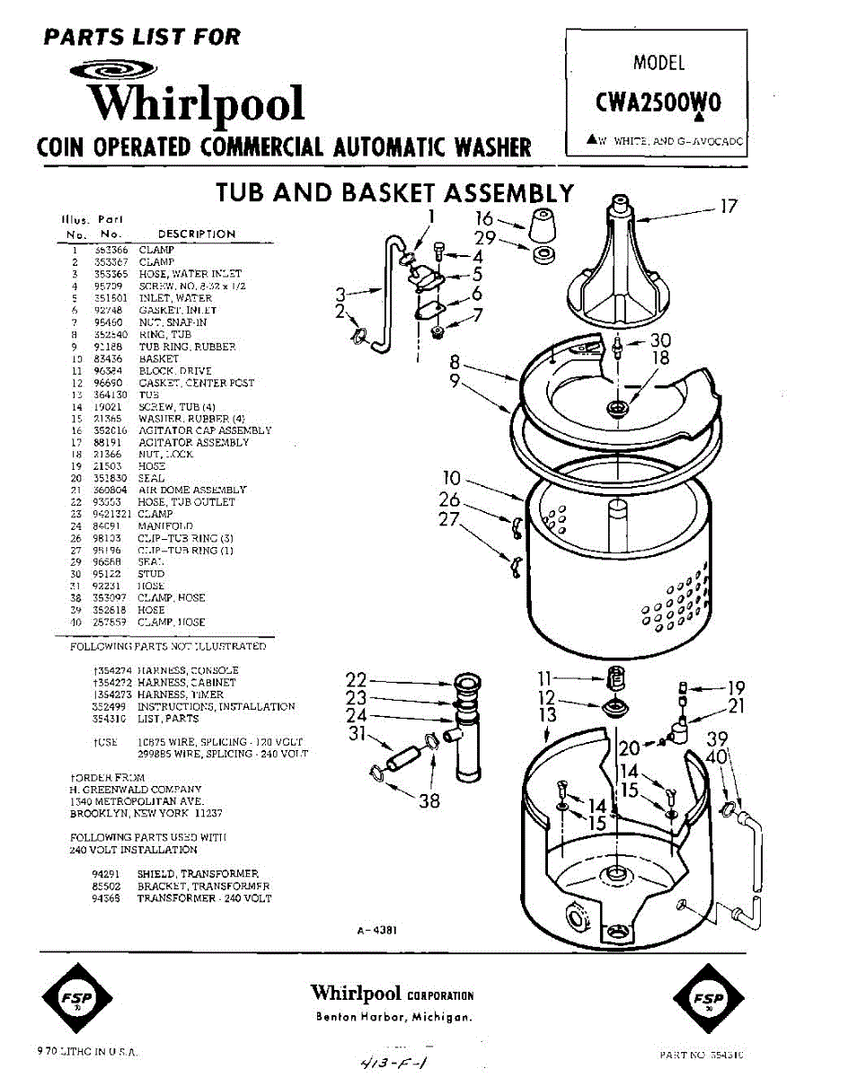 Parts for Whirlpool CWA2500W0: 01 - Tub And Basket , Lit / Optional Parts