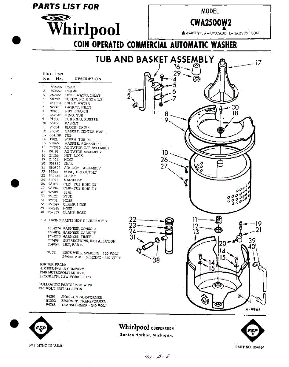 Parts for Whirlpool CWA2500W2: 01 - Tub And Basket , Lit / Optional Parts