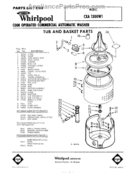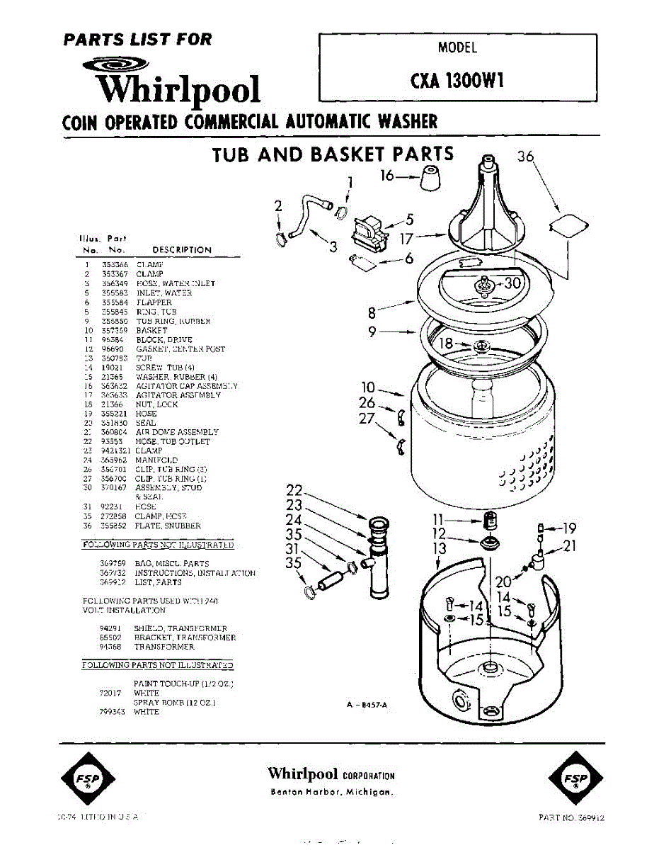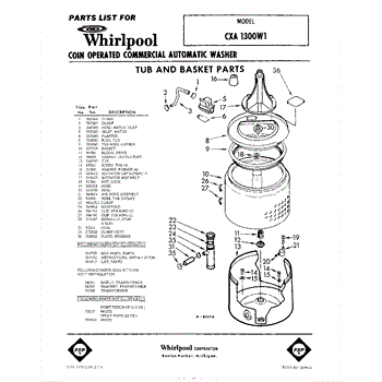 Parts for Whirlpool CXA1300W1: 01 - Tub And Basket , Lit / Optional Parts