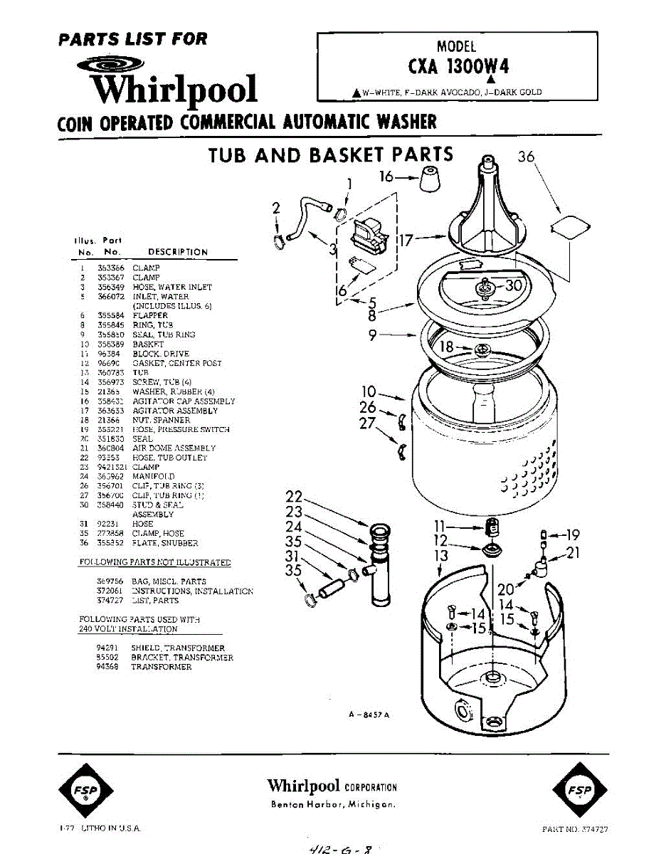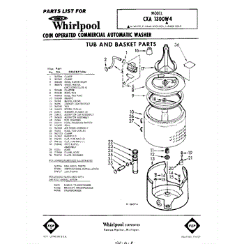 Parts for Whirlpool CXA1300W4: 01 - Tub And Basket , Lit / Optional Parts