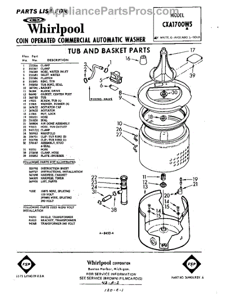 Parts for Whirlpool CXA1700W5: 01 - Tub And Basket , Lit / Optional Parts