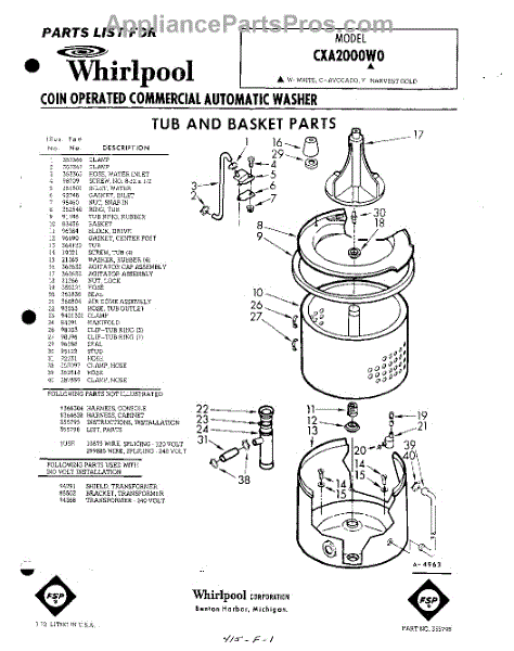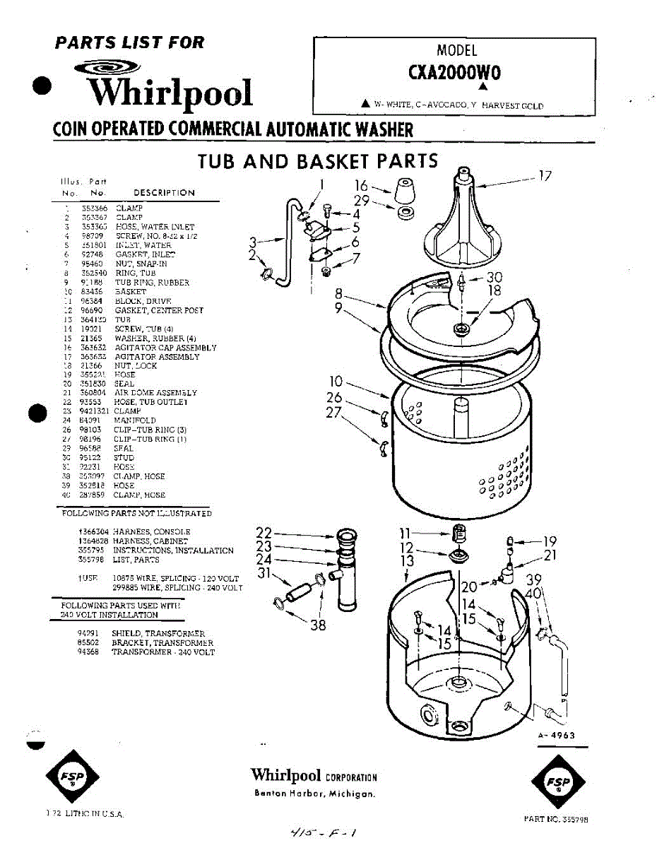 Parts for Whirlpool CXA2000W0: 01 - Tub And Basket , Lit / Optional Parts
